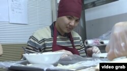 "Когда они сюда пришли, они ничего не умели. Мы их учили чистить морковку и картошку. У себя дома они этого не делали, - рассказывает одна из наставниц, Аида Мамбеталиева. - Мы их научили месить тесто, лепить пирожки. Болуш у нас улыбчивый парень. Он очень красиво лепит вареники и пельмени".