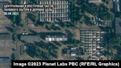 Тридцатого июня белорусская служба Радио Свобода получила спутниковые снимки более высокого качества. На них можно детально рассмотреть сооруженные возле Цели объекты.