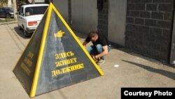 Компания "Самарские коммунальные системы" установила пирамиду у дома клиента, который задолжал за воду более 21 тысячи рублей. На пирамиде надписи: "Долг за воду оплатите!" и "Здесь живет должник!" В пирамиде также есть встроенный динамик, проигрывающий сообщение, в котором рассказывается, сколько денег должен человек и за что.