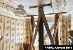 Недавно из-за протекающей кровли в Саратове обрушился фасад здания общежития на улице Измайлова. Проведенная строителями экспертиза оценила износ дома на 54%, а для признания каменного здания аварийным требуется 70. Или необходимо официально признать наличие опасности для жизни и здоровья людей. В доме №3 по улице Измайлова такой опасности не нашли. Тем не менее, по всему дому "в особо опасных местах" – в жилых комнатах, на кухнях и в туалетах – жители расставили распорки из бревен и досок, которые держат потолок, чтобы он не упал.