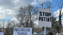 У посольства России в Чехии проходит митинг несогласных с агрессией России против Украины.